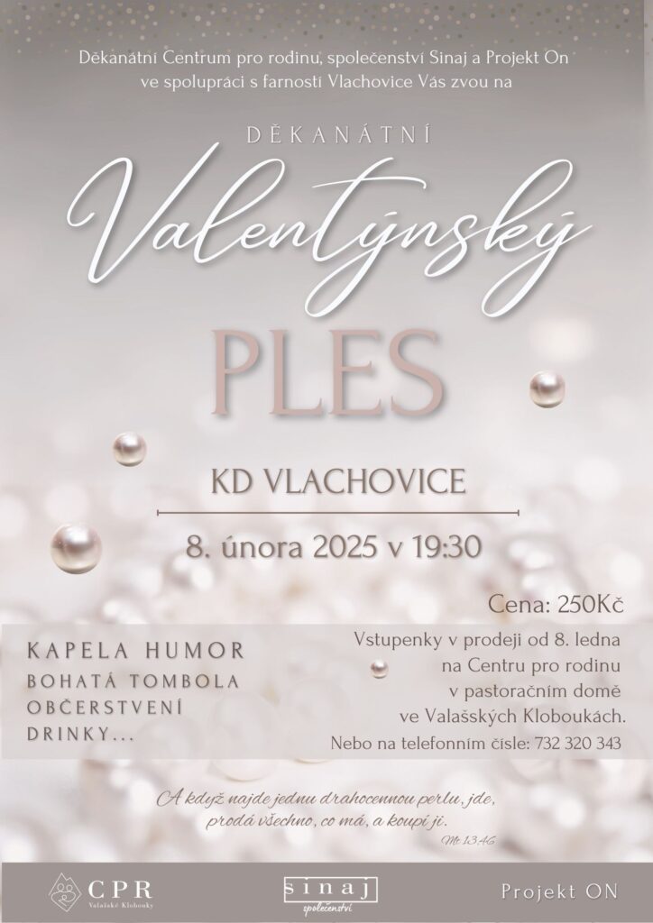 Srdečně vás zveme na již tradiční Valentýnský ples! Tentokrát se však nově bude konat v Kulturním domě ve VLACHOVICÍCH! Jako minulý rok nás celým večerem bude provázet naše kapela HUMOR. Můžete se těšit na tombolu, skvělé drinky na baru, krásné společenství a zábavu! Těšíme se na vás!